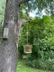 The squirrels would eat from the birdcage, finish it all, and make their way to the feeders.They even began flying across from the far away branches.Can you say… “flying squirrels?”